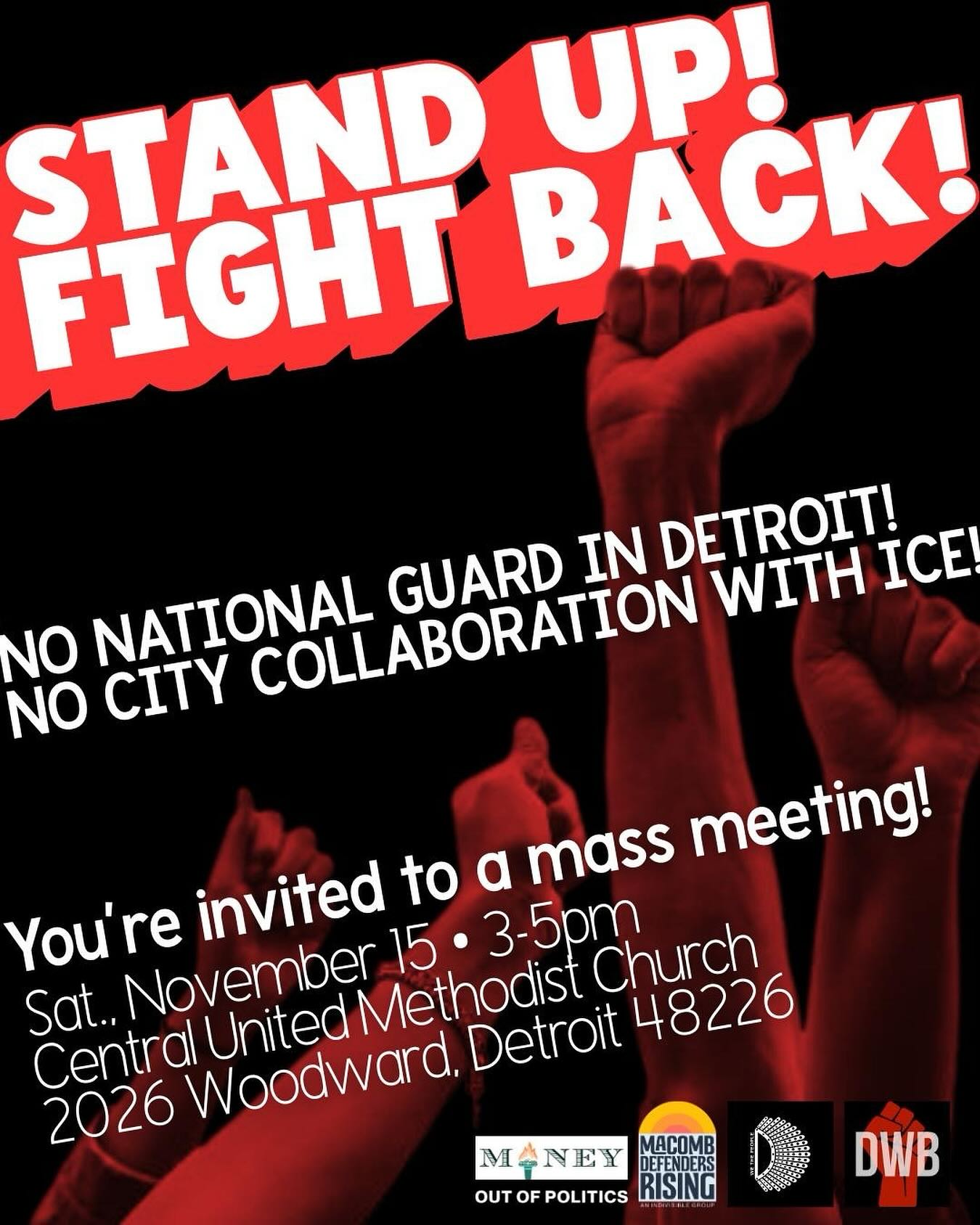 You’re invited to a mass meeting! No National Guard in Detroit! No city collaboration with ICE!